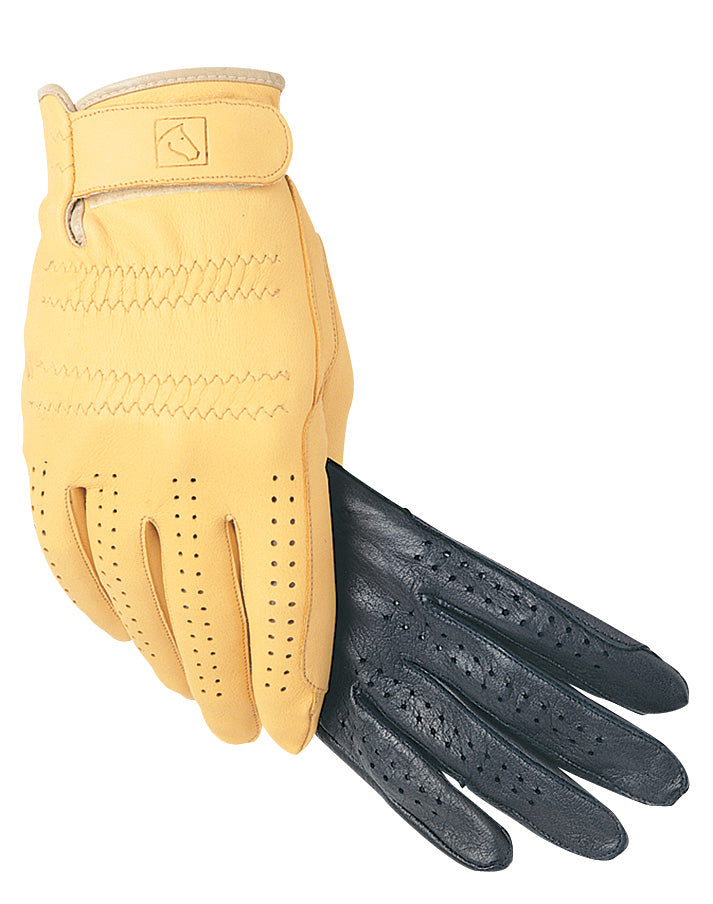 Soft, colour-fast, sweat absorbing palm, breathability, comfortable, durable and washable. Excellent rein grip in all weather. Washable, will not shrink after washing, will not stiffen when dry. Wears better than leather. The 4200 SSG Hybrid shown here features an Aquasuede Plus® palm.