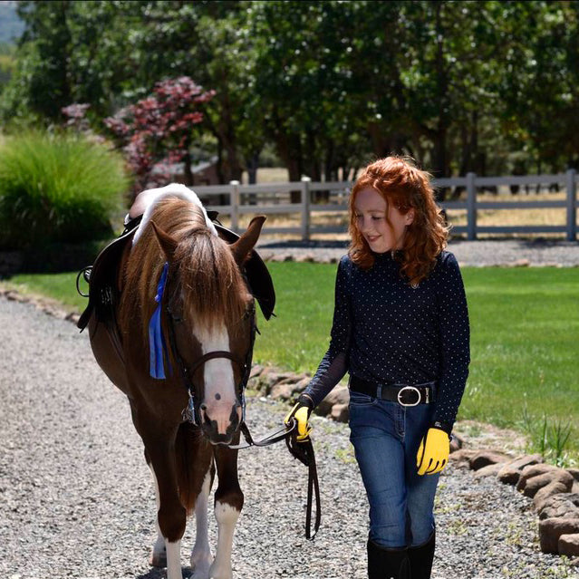Soft, colour-fast, sweat absorbing palm, breathability, comfortable, durable and washable. Excellent rein grip in all weather.
